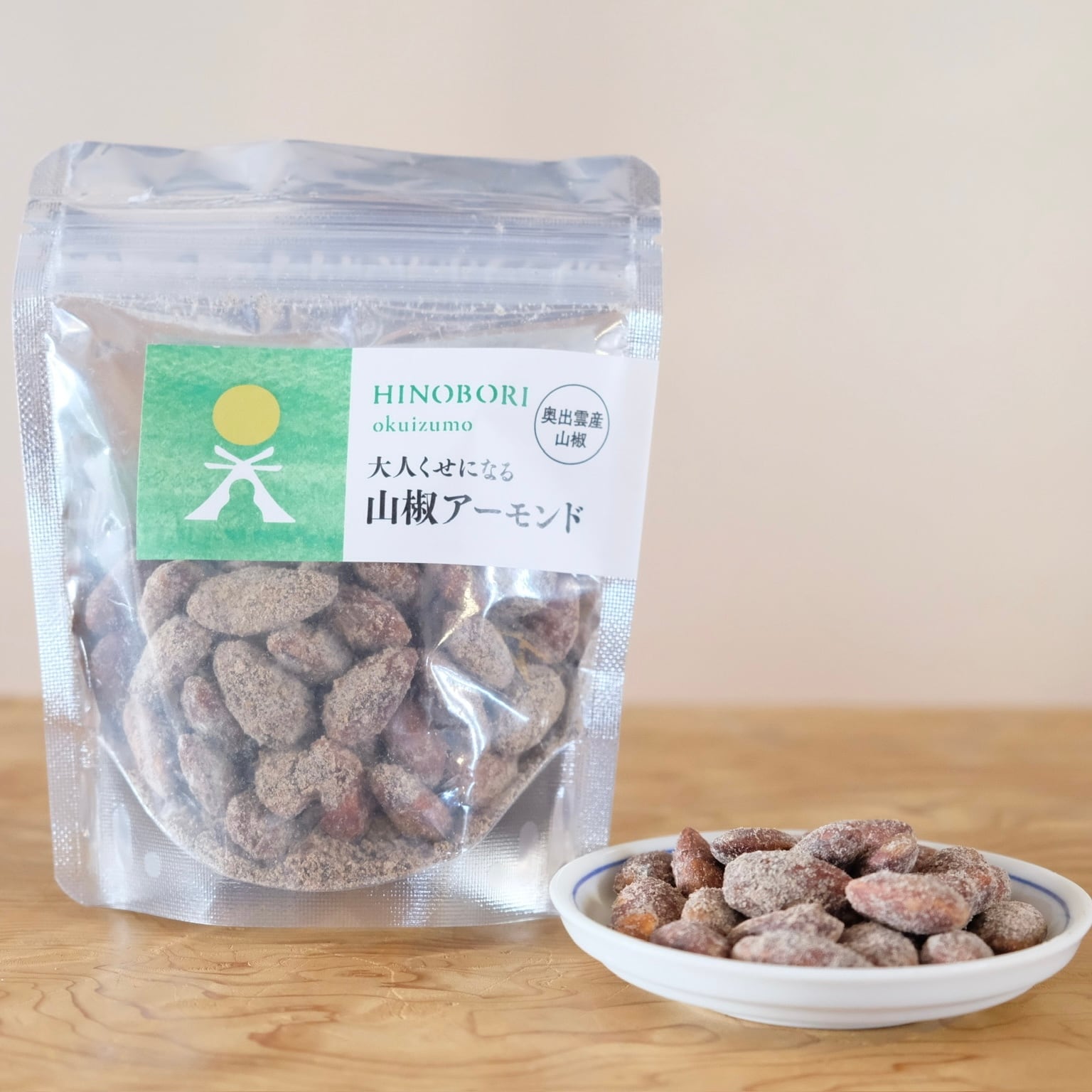 ■原材料:ローストアーモンド(アメリカ産)、砂糖、粉山椒(島根県雲南市産)